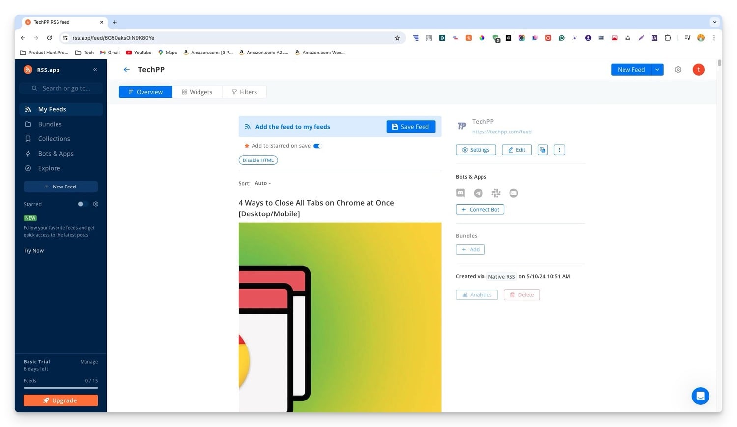 RSS.app is another simple and easy-to-use tool for creating RSS feeds for any website. It also supports creating social media feeds. You can generate RSS for any website using the site’s URL. You can filter the feeds, customize them with your URL, and bundle multiple feeds into one category. You can also set up alerts and get notifications through email, Telegram, or Slack.